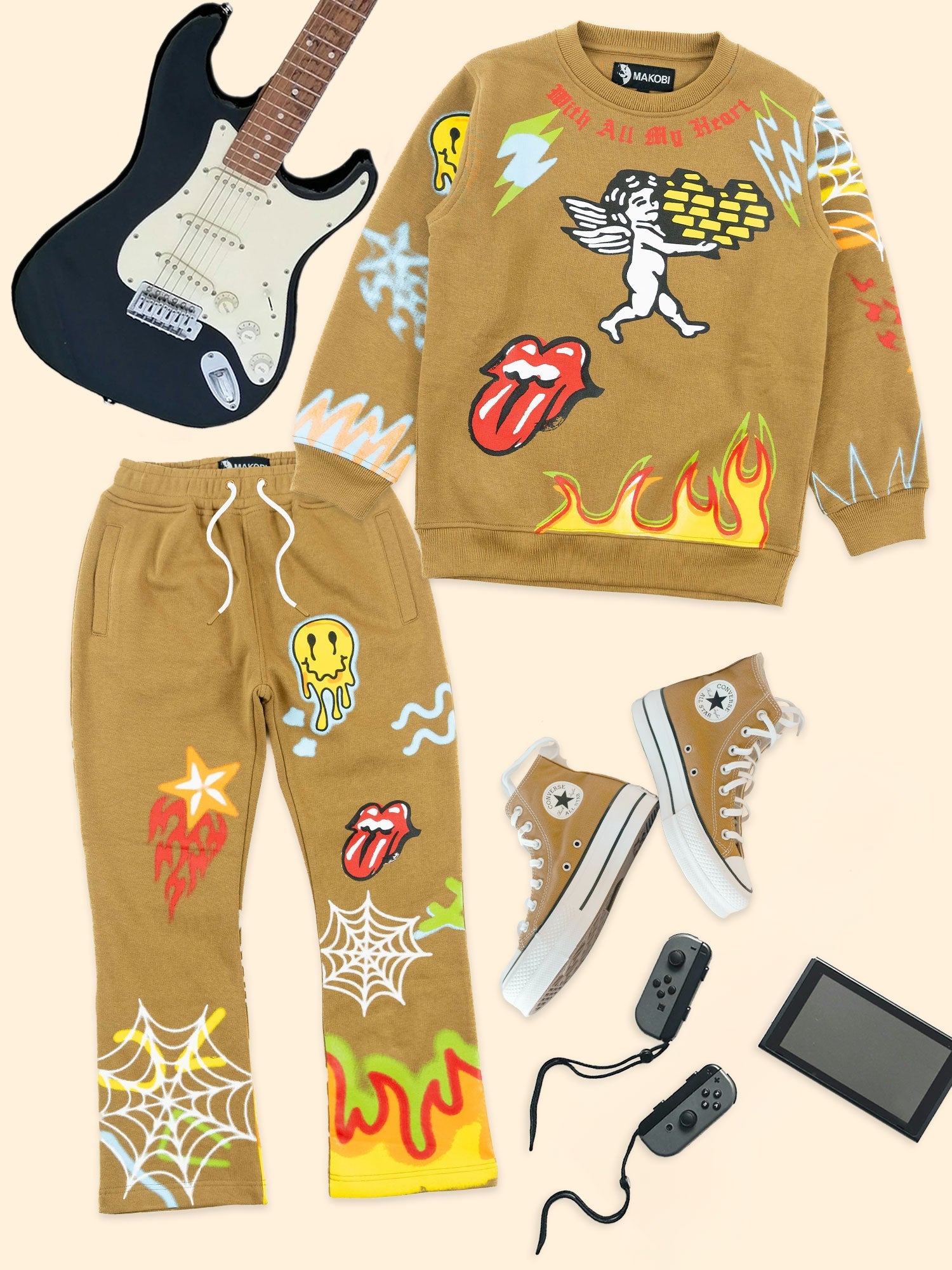Turn up the style with the Makobi Kids Graffiti Track Set, mixing comfort with urban graffiti-inspired detail.