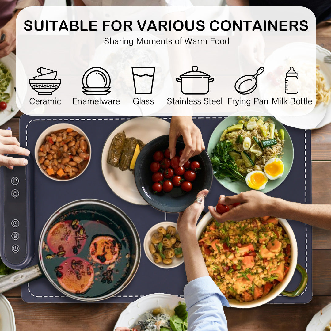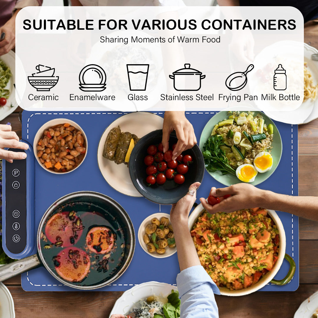Compatible with all heat-resistant tableware, the mat is perfect for more than just food warming. Use it to thaw frozen items, proof dough, or even warm beauty masks. Ideal for family meals, gatherings, parties, and buffets, it guarantees your food stays at the perfect temperature.