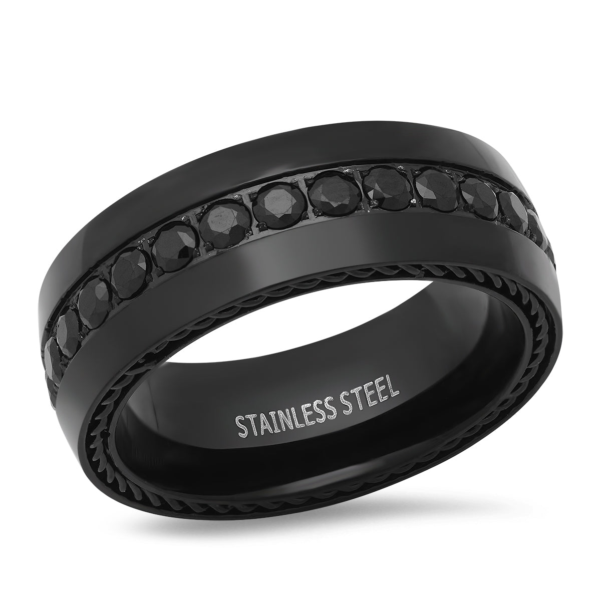 This simple yet stylish gold ring features a single line of Genuine CZ pave. Pair this with iced out or plain gold, stainless steel , or black ip accessories, Miami Cuban Link Necklace or Bracelet. Available in three plating options.