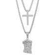 Stainless Steel Double Layered Cross And Jesus With Simulated Diamonds Necklace - Silver is backordered and will ship as soon as it is back in stock.