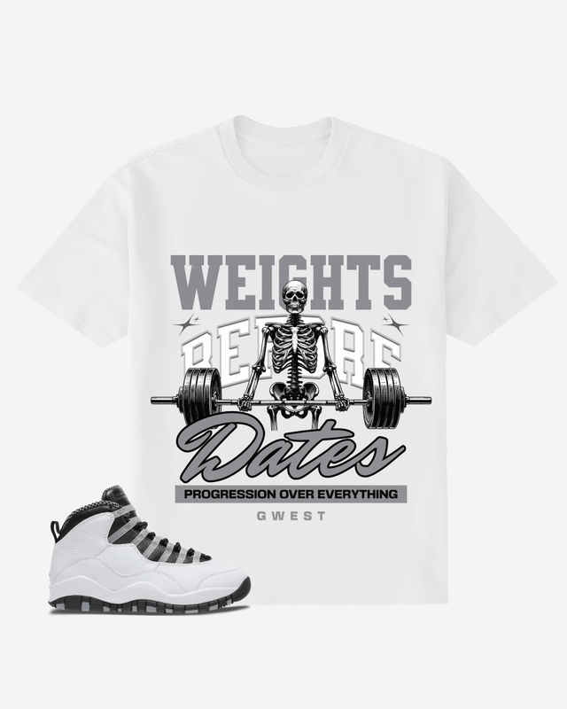 Weights Before Dates Oversized T-Shirt - White / S is backordered and will ship as soon as it is back in stock.